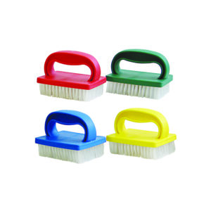 Cores que identificam o uso por área prevenindo contaminação cruzada entre ambientes. Peso 0,6 kg. Cores amarela, vermelha, verde e azul. Preço de escova multiuso Bralimpia direto da fábrica.