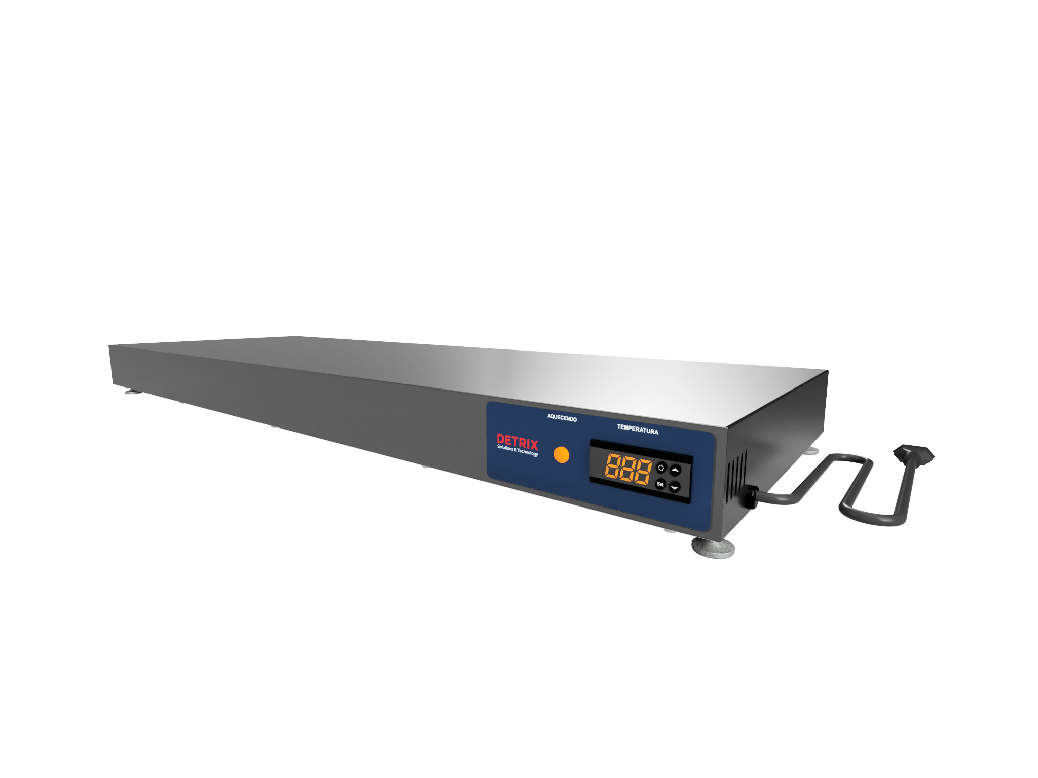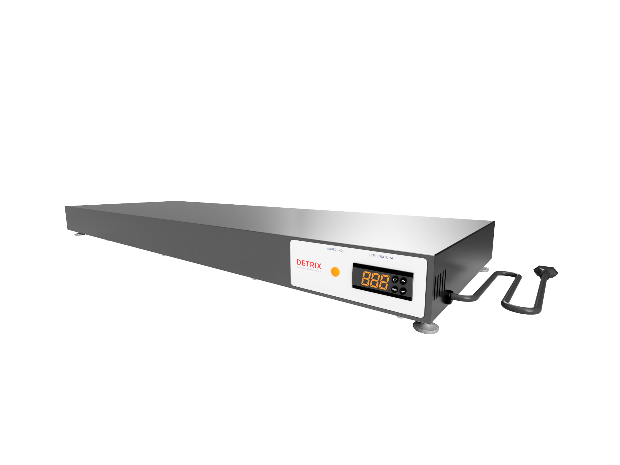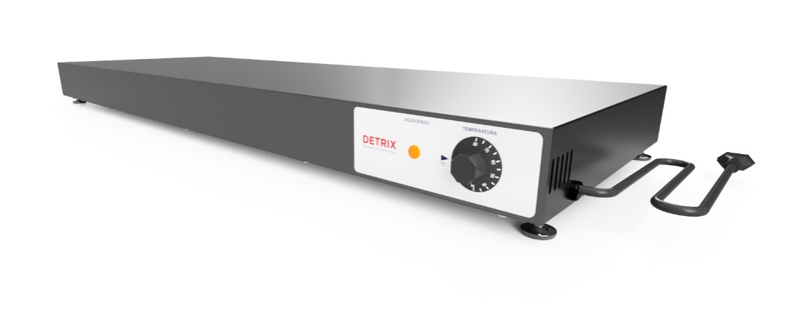 Fabricada em aço inox, a pista aquecida profissional possui sistema de aquecimento por resistência elétrica e controlador de temperatura, com regulagem entre 50°C e 95°C, permitindo ajuste preciso para manter alimentos e embalagens na temperatura ideal durante a montagem e despacho.
