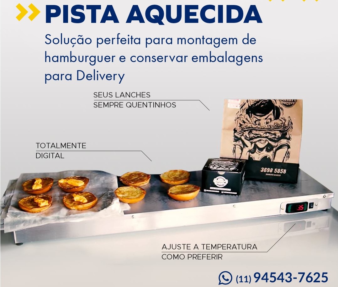 Pista aquecida para delivery é ideal para montar hambúrgueres, lanches e pratos elaborados e de manter aquecidas as embalagens e sacolas com pedidos prontos para entrega mantendo a temperatura dos pedidos até o momento da expedição.