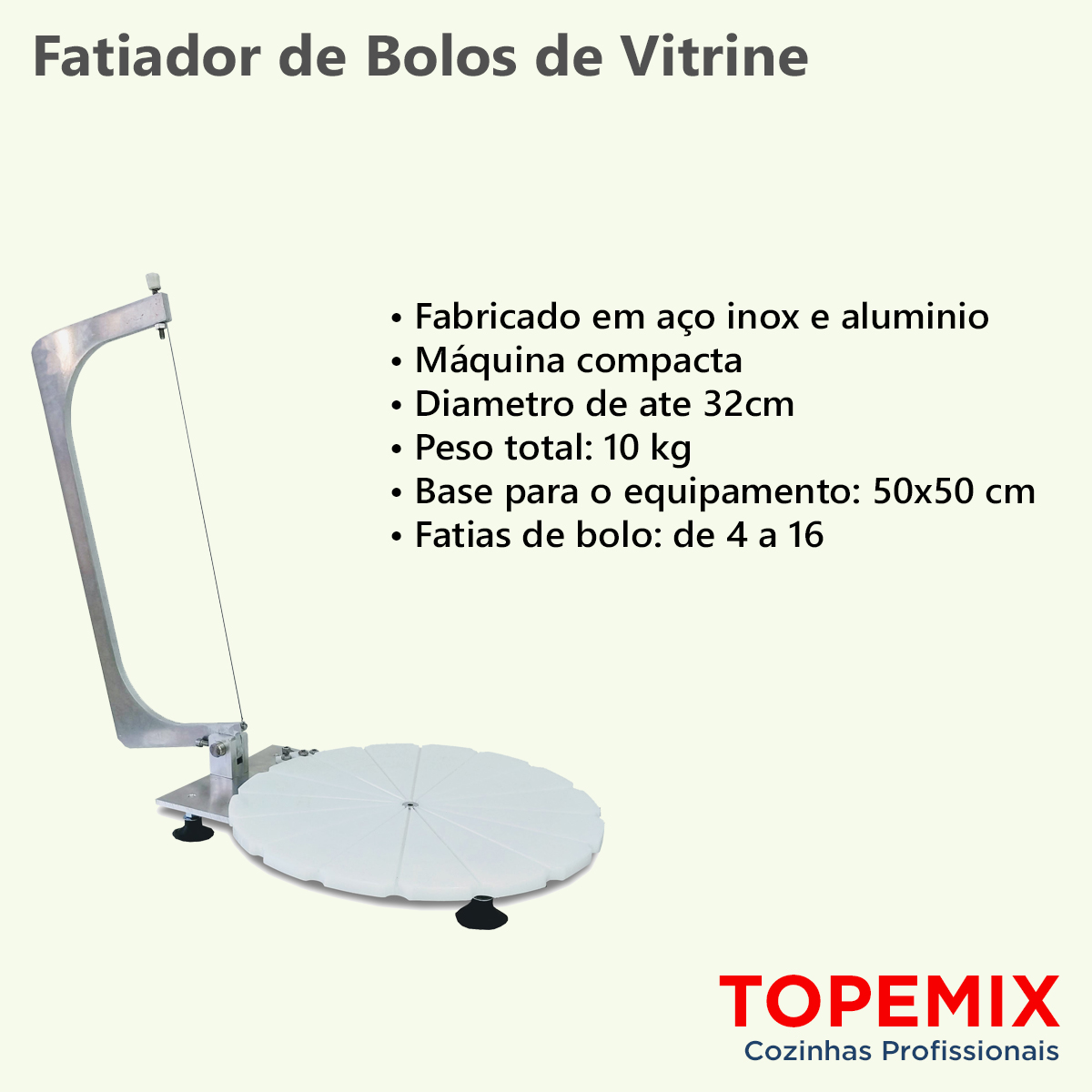 Fabricado com estrutura em aço inox e alumínio com fio de lâmina em aço inox para fácil limpeza e higienização, atendendo às exigências de boas práticas de manipulação de alimentos em confeitaria, padarias, cafeterias, restaurantes, redes de fast food, buffets e cozinhas profissionais.