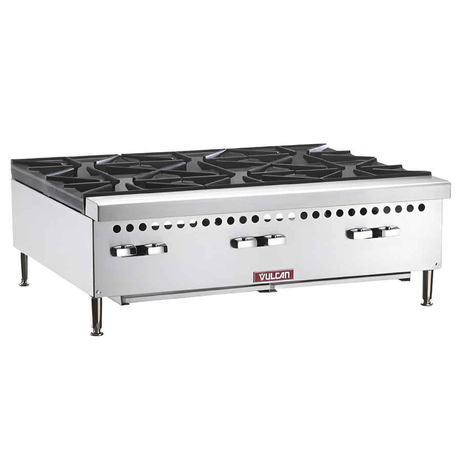 O fogão 6 Bocas Vulcan VCRH36 é utilizado como fogão a gás de bancada e fogão hotplate Vulcan em restaurante, loja de fast food e cozinha profissional que necessitam agilidade e padronização no preparo de pratos.