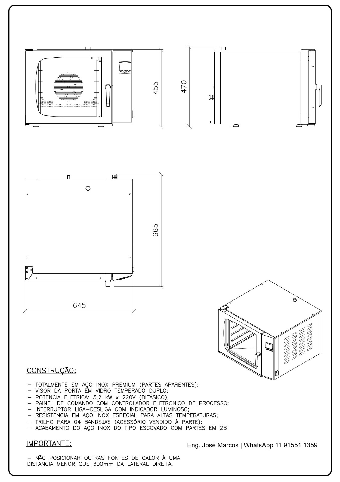 Utilizado como forno de convecção elétrico, forno convecção profissional, forno de convecção para padaria, forno de convecção para salgados e forno de convecção para pão de queijo em restaurantes, lojas de fast food de conveniência.