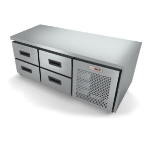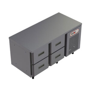 Freezer horizontal com gavetas fabricado em aço inox com isolação térmica em poliuretano de 60 mm. Ar frio forçado, desgelo automático, controlador de temperatura digital, gavetas com trilhos reforçados.