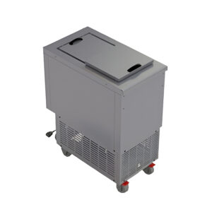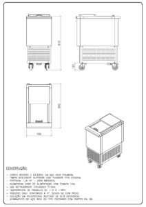 O sistema de refrigeração é por parede fria, composto por unidade condensadora de baixo nível de ruído. Temperatura de trabalho entre -16 °C e -18 °C. Equipado com 4 rodízios de Ø 3”, sendo 2 fixos e 2 giratórios com freios, facilita a movimentação em corredores e elevadores.