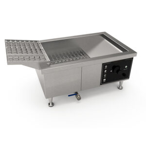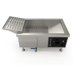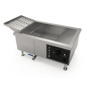 Fritadeira de pastel elétrica, fabricada em aço inox com controle de temperatura digital, zona fria que retem os detritos que se soltam dos pasteis, resistências submersas blindadas em inox e escorredor móvel do pastel frito; Garantia de 2 anos de fábrica para estrutura e vazamentos.