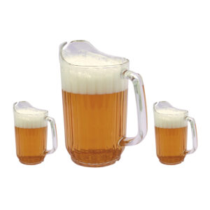 Jarra de plástico transparente, fabricada em material plástico de alta resistência.