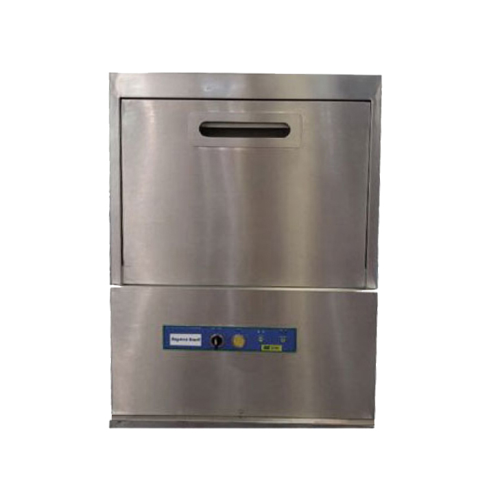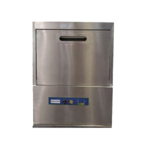Modelo de bancada com abertura frontal, fabricada em aço inox com isolamento térmico. Temperatura de lavagem 50º a 60ºC e de enxágue 80º a 90ºC. Consumo de água 2,5 Litros por ciclo e de energia 4 Kwh. Ciclos de 60 e 120 segundos.