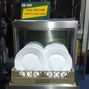 Máquina de lavar louças RB300, para lavar bandejas, pratos, talheres, copos e louças em restaurante, padaria, lojas de fast food e cozinha industrial.