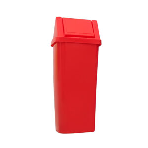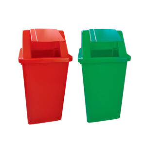 Lixeira com tampa basculante vai e vem, fabricada em polietileno alta densidade (PEAD) com aditivo anti-UV contra variações climáticas (sol, chuva e poluição).