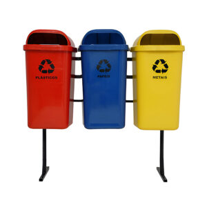 Utilizado como conjunto de coleta seletiva e kit de coleta seletiva com base para fixar em pisos e calçadas de condomínios, praças, shoppings, indústrias, hotéis, hospitais e pontos de coleta.