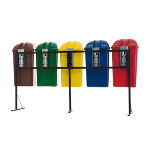 Utilizado como conjunto de coleta seletiva e kit de coleta seletiva com base para fixar em pisos e calçadas de condomínios, praças, shoppings, indústrias, hotéis, hospitais e pontos de coleta.