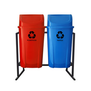 Utilizado como conjunto de coleta seletiva e kit de coleta seletiva com base para fixar em pisos e calçadas de condomínios, praças, shoppings, indústrias, hotéis, hospitais e pontos de coleta.