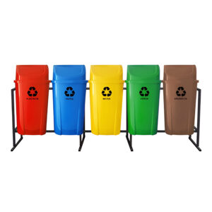 Lixeira Coleta Seletiva 60 Litros – Kit 5 Lixeiras Basculante