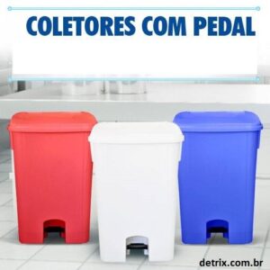 Cores preta, branca, cinza, laranja, marrom, verde, azul, vermelho e amarelo. Preço de lixeiras com pedal direto da fábrica.