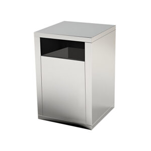 Lixeira fast food baixa foi desenvolvida com altura 60 mm para ficar embaixo de mesas e balcões, fabricada em aço inox escovado e equipada com vão frontal que facilita o descarte rápido de lixos e resíduos. Possui cesto plástico interno de 25 litros, garantindo praticidade e fácil limpeza.