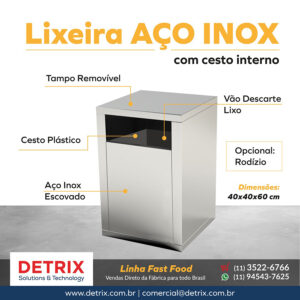 Com design moderno, compacto e higiênico, é ideal para ambientes de alto fluxo de pessoas, especialmente em estações de self-service, praças de alimentação e estabelecimentos que exigem eficiência na gestão de resíduos. Sua estrutura em aço inox oferece durabilidade, resistência à corrosão e excelente acabamento.