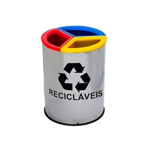 Lixeira mix de inox com 3 divisórias nas cores da coleta seletiva, fabricada em aço inox com divisórias em polietileno coloridas que são removíveis o para descarte de lixos.