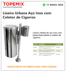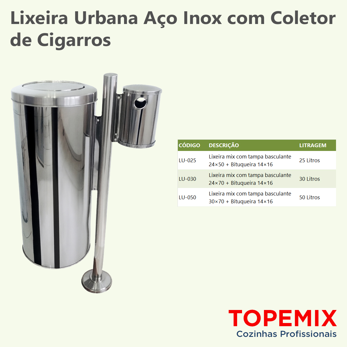 | LU-050 | Lixeira mix com tampa basculante 30×70 cm + Bituqueira 14×16 cm | 50 Litros |
