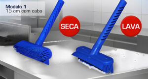 Utilizado de um lado para varrição e limpeza de sujidades, do outro lado para recolher líquidos na secagem de superfícies planas em geral como vidros, alumínio, aço inox, paredes azulejadas, coifas, pisos frios em geral, mobiliários e carpetes.