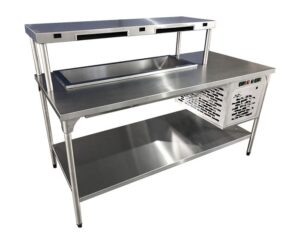 A mesa de montar hamburguer e lanches refrigerada, agrupa em um único local, todos os equipamentos necessários para montar e embalar lanches e hamburguer, otimizando espaço e reduzindo mão de obra.