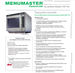 A principal utilização do micro-ondas industrial Menumaster MRC17S2B de 1700 watts de potência é em cozinhas industriais, restaurantes, lojas de conveniências, food service e delivery. O alimento pode ir do freezer ou congelador à mesa em segundos ou minutos mantendo o sabor e textura original.
