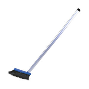 Mini vassoura Bralimpia, produzida em polipropileno de alta resistência com cerdas macias em PET para limpeza em áreas secas e cabo de alumínio anodizado no formato angular, que proporciona, perfeita ergonomia para o usuário em relação à pá coletora.
