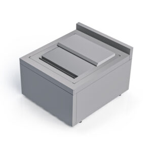 Modulo bar cuba porta gelo com isolamento térmico e porta deslizante bipartida, fabricado em aço iço inox escovado.