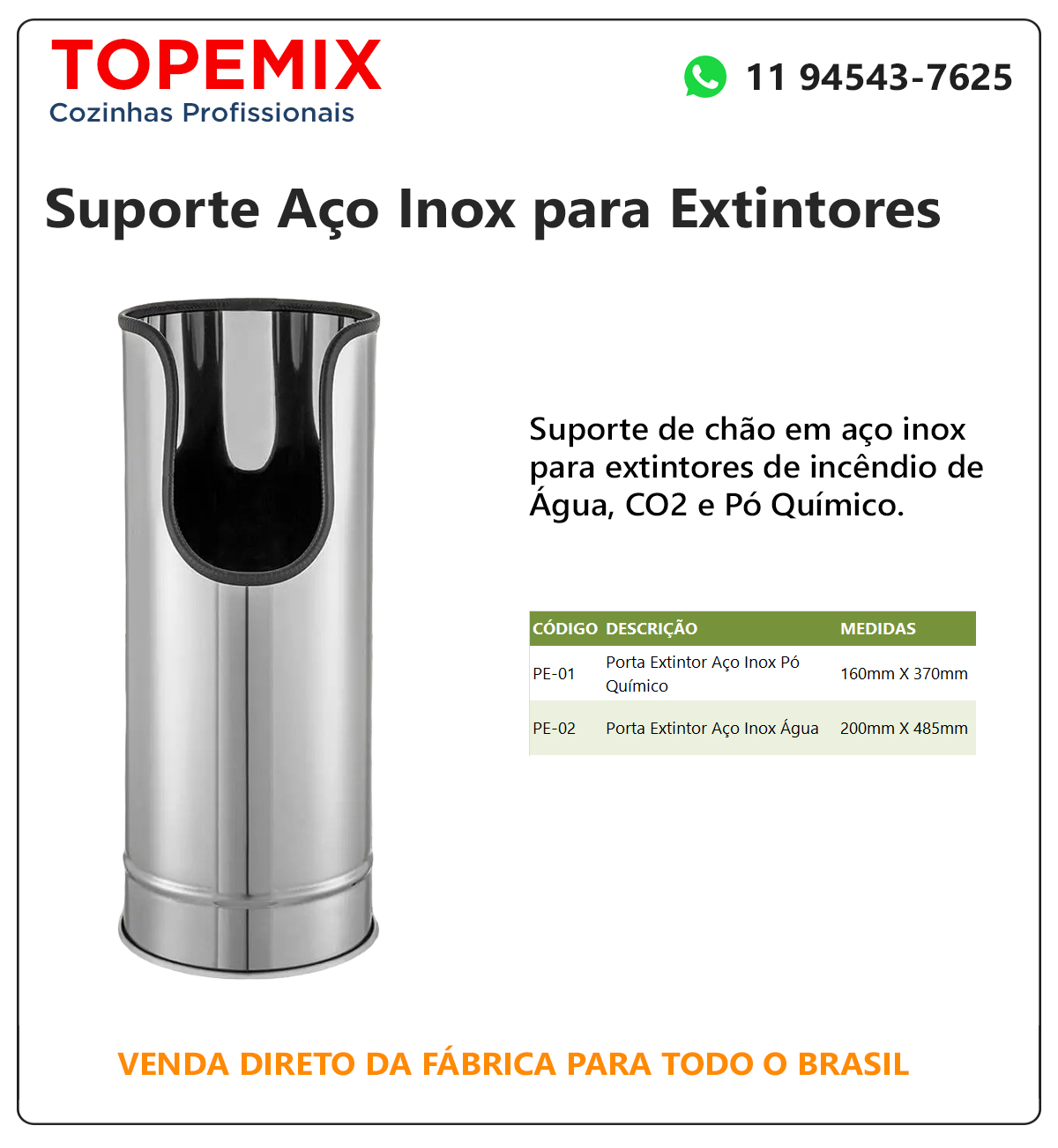 | PE-01 | Porta Extintor Aço Inox Pó Químico | 160mm X 370mm |