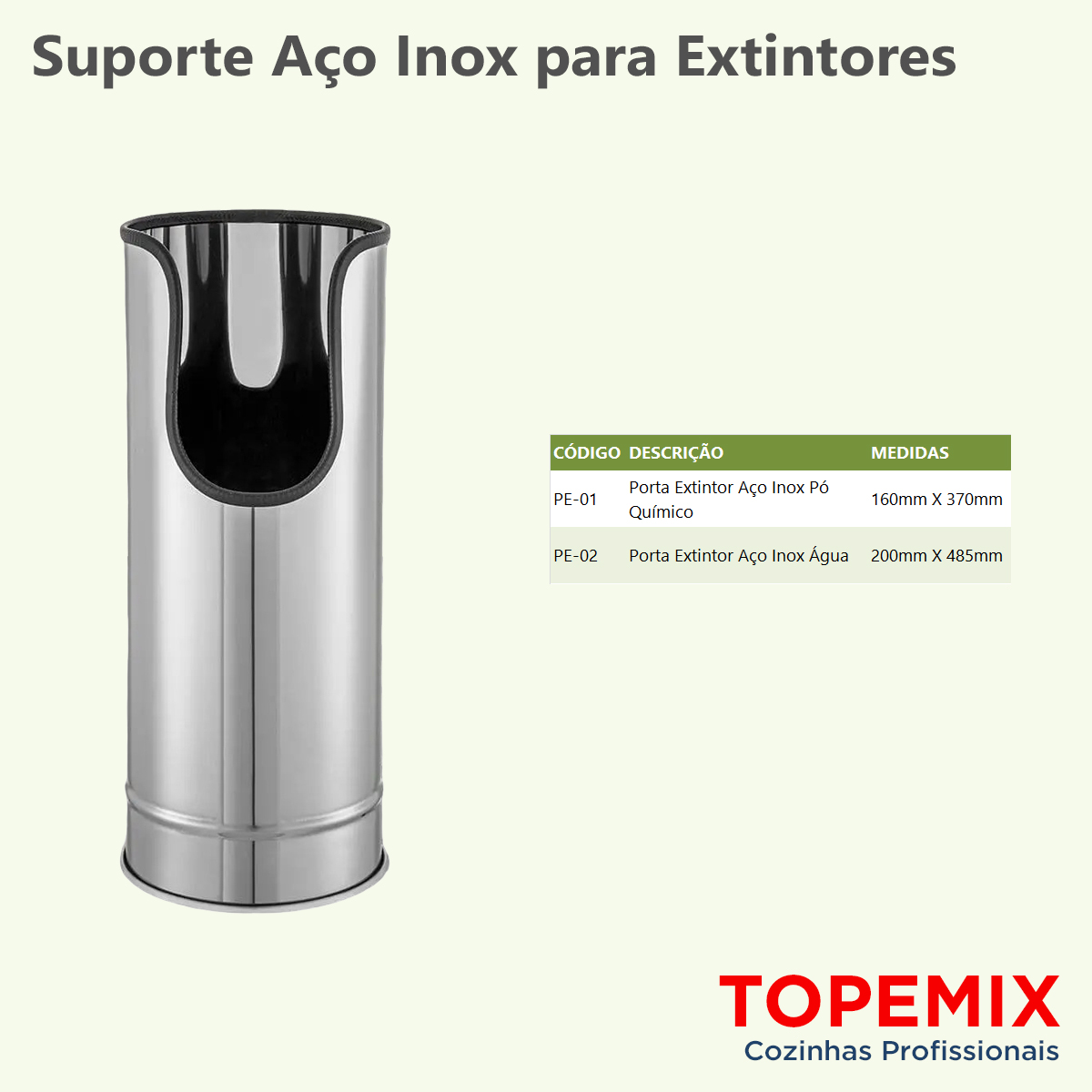 | PE-02 | Porta Extintor Aço Inox Água | 200mm X 485mm |