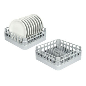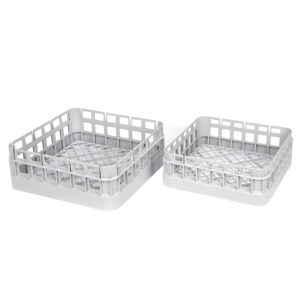 Gavetas racks lisas com medidas especiais para lavar louças em lavadoras de louças de pequeno porte ou para uso diversificado de acordo com a necessidade da operação. Fabricadas em polipropileno resistente a altas temperaturas.
