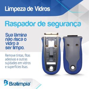 Acompanha uma lamina retrátil. Leve e compacto e cabe no bolso. Preço de raspador de segurança Bralimpia direto da fábrica.