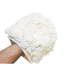 Refil luva Maxiluva Bralimpia, fabricado com fibra sintética macia na cor branca de alto poder de absorção de poeiras concentradas e remoção de sujidades.