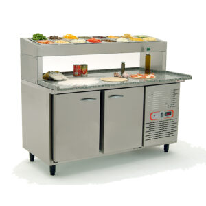 Utilizado no preparo de pizzas, lanches e saladas em pizzaria, padaria, restaurante e loja de fast food. Tensão 220v. Temperatura de trabalho 1ºC à 6ºC. Preço de balcão com condimentadora da fábrica.