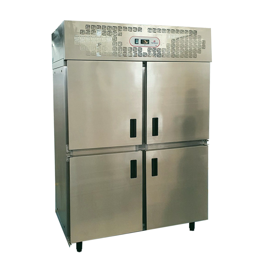 Refrigerador vertical e freezer vertical, fabricado em aço inox com isolação térmica em poliuretano injetado 60 mm. Fluxo interno de ar forçado garantindo refrigeração homogênea. Sistema frost free com desgelo automático.