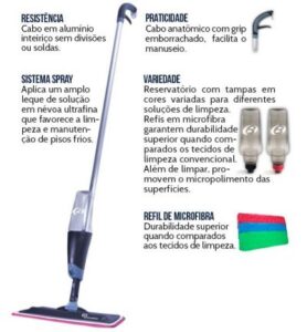 Spray Mop Bralimpia, para limpeza úmida de pisos e manutenção da limpeza em pisos frios em geral.