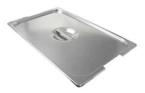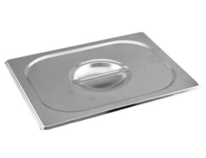 Tampa para cuba gastronômica GN 1/1 de aço inox com dimensões mundialmente padronizadas para proteger e conservar alimentos em cubas GN durante o preparo, refrigeração e cocção em fornos combinados, utilizada como tampa para cuba gastronômica em buffet, rechaud, banho maria e condimentadora de cozinhas, restaurantes e refeitórios em geral.