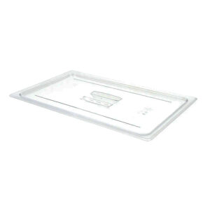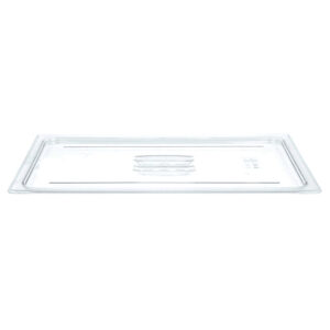 Tampa para cuba GN1/1 de policarbonato da Cambro, fabricado em policarbonato na cor transparente, resistente a manchas, odores e arranhões, praticamente inquebrável e suporta temperaturas elevadas (-40º a 99ºC).