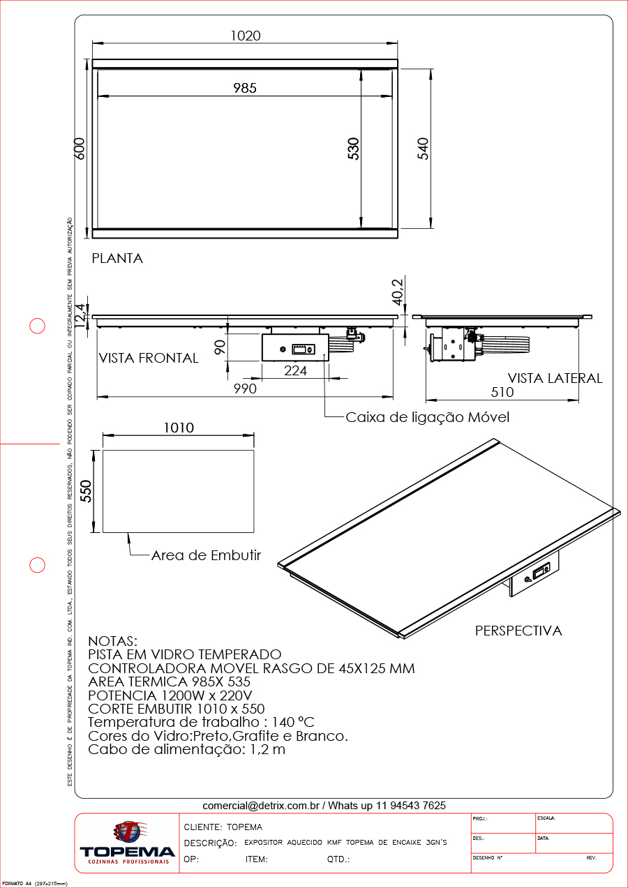 Utilizado como pista aquecida de encaixar em mesas de self service e buffet em restaurantes, hotéis, hospitais, industrias e lojas de fast food.